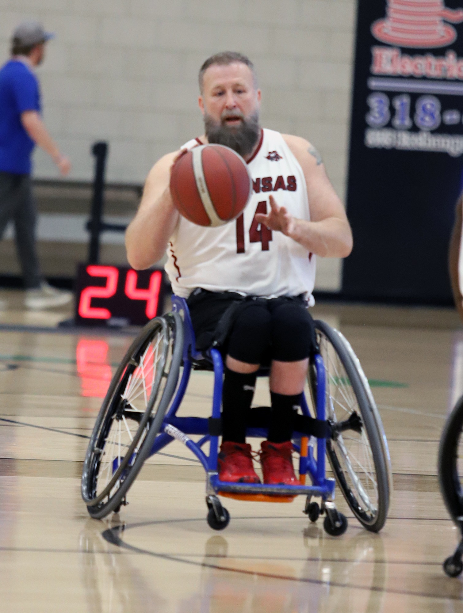 After 30-plus years of playing wheelchair basketball, the 52-year-old Oklahoma City, Okla., resident finally earned his first National Wheelchair Basketball Association (NWBA) title. And he played a key role in helping the No. 2-seeded Arkansas Rollin’ Razorbacks knock off the No. 5-seeded Memorial Rehabilitation Sharks, 61-51, in the NWBA Adult Division II championship game Sunday afternoon at the West Monroe Sports & Events complex in West Monroe, La.