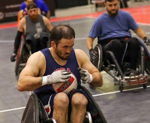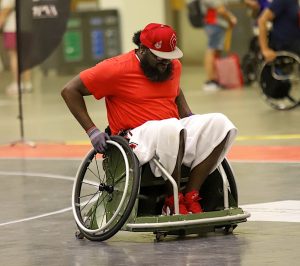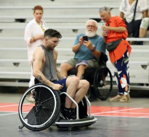 As he wheeled up to the 44th National Veterans Wheelchair Games’ (NVWG) wheelchair rugby clinic Thursday afternoon, Austin Walters didn’t have a key item — a sports chair.